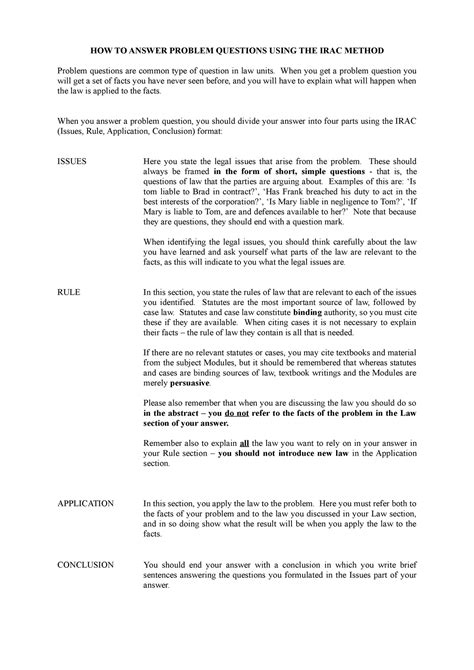 Read PROBLEM QUESTION IRAC SAMPLE ANSWER Audio CD